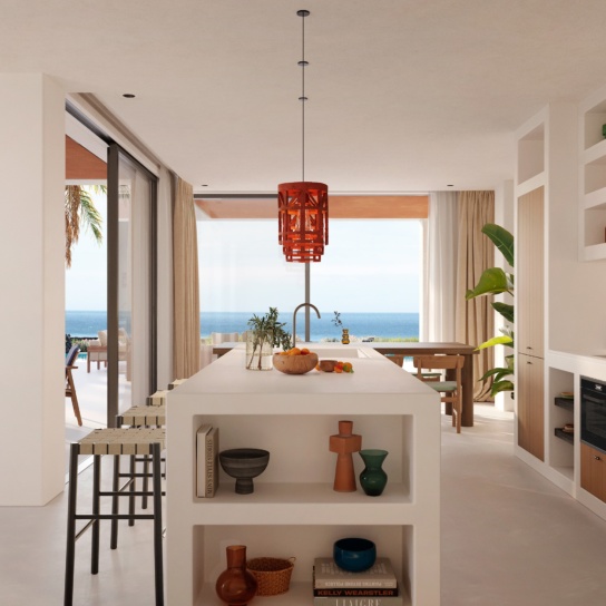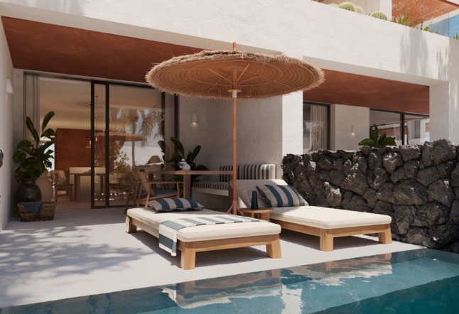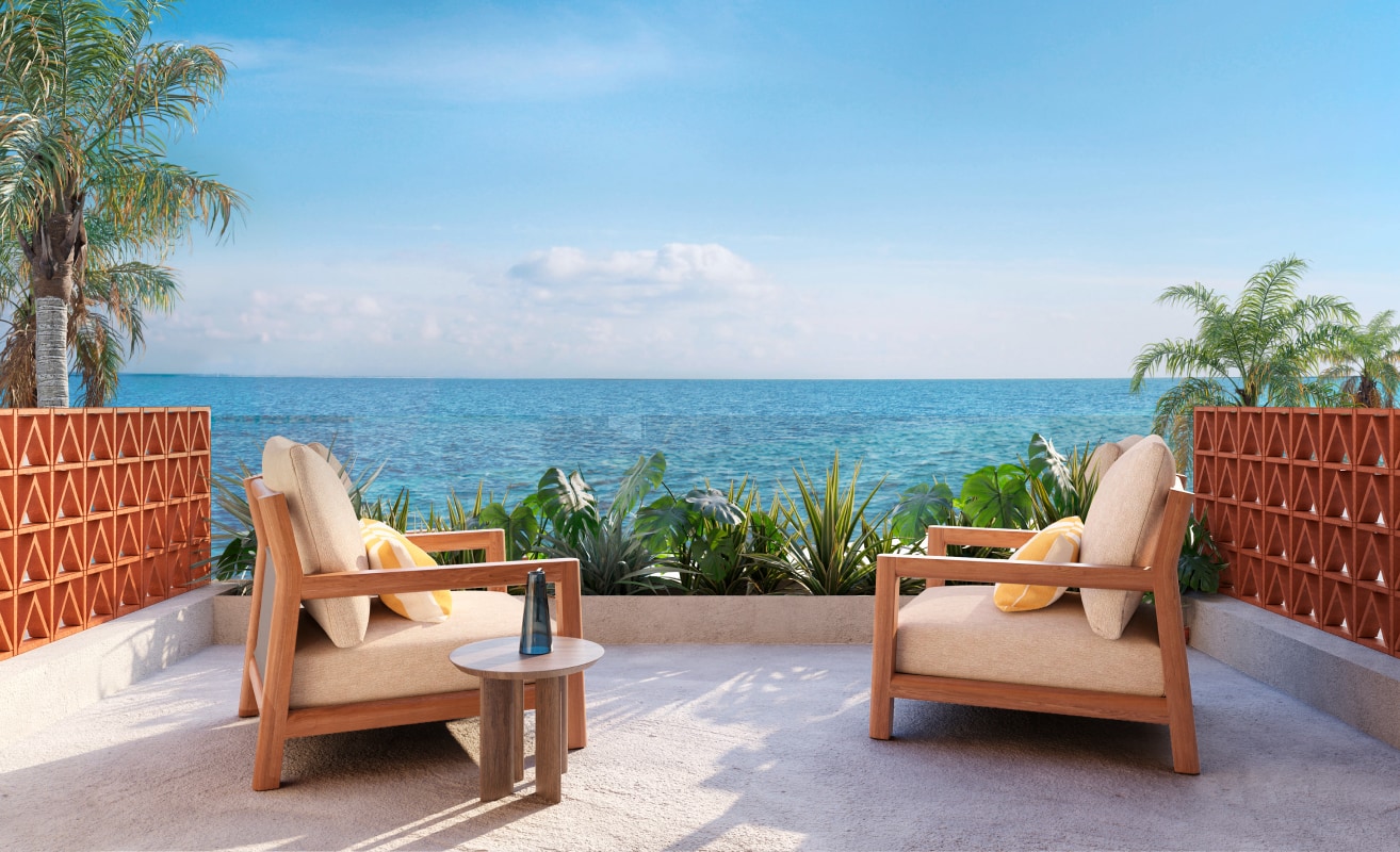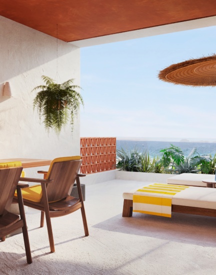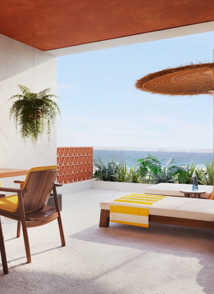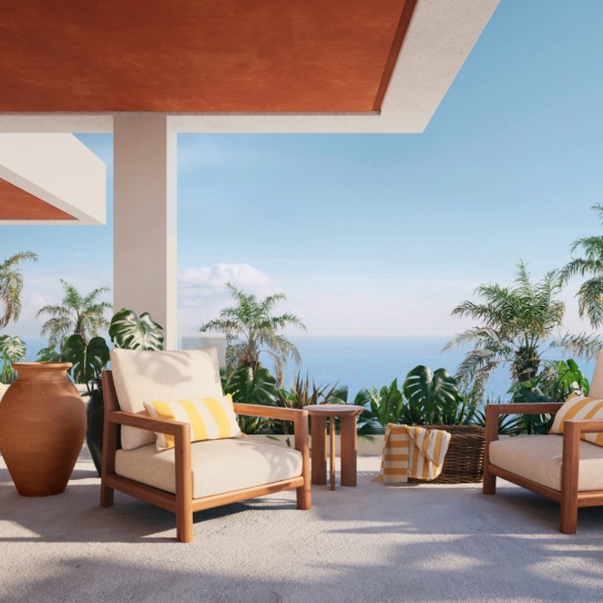 Hemos diseñado cada apartamento de Kora Maresía para que muestre su entorno natural. Las terrazas ofrecen un espacio de privacidad al aire libre, un trocito de la isla en tu casa.