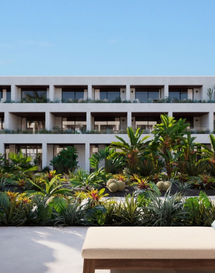 En la planta exterior se encuentran los apartamentos, todos orientados al mar y conectados por jardines y espacios comunes en los que encontrarás todo lo que necesites.