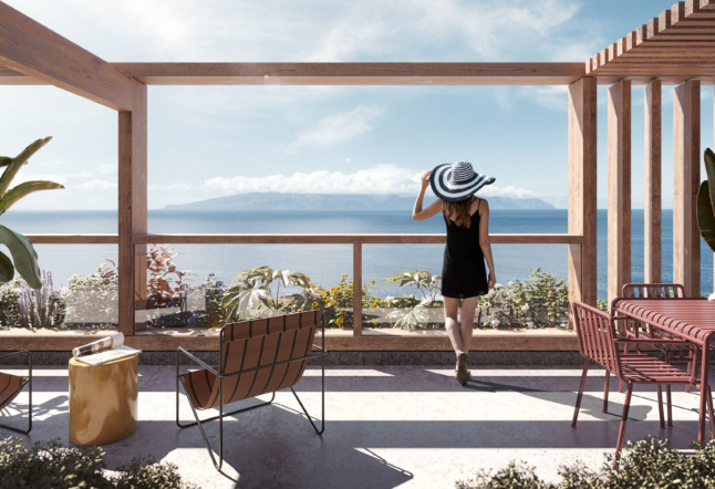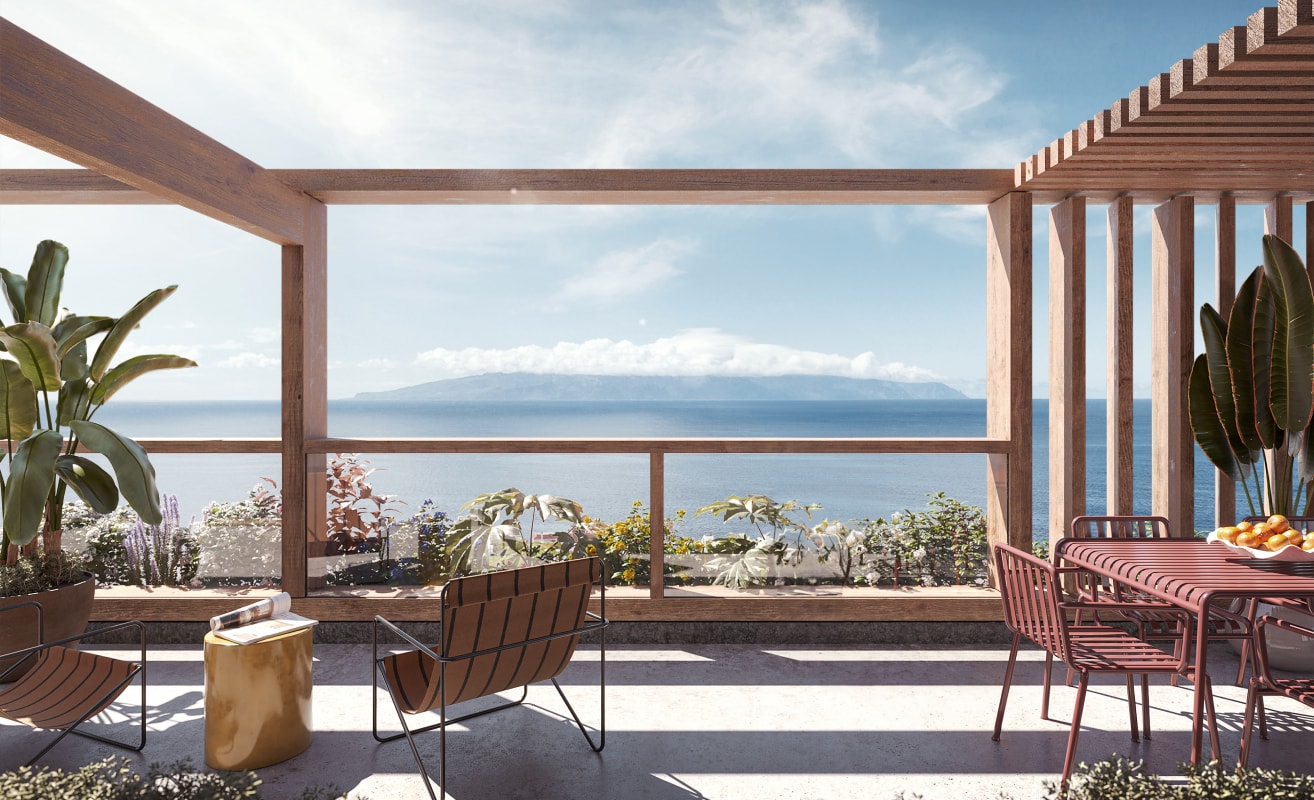 Tierra a la vista! Cada mañana La Gomera y el Atlántico se saludan uno al otro con huéspedes y residentes como testigos. Las vistas desde Tamaragua, son uno de sus mayores atractivos por su privilegiada ubicación frente al mar y la vecina isla.