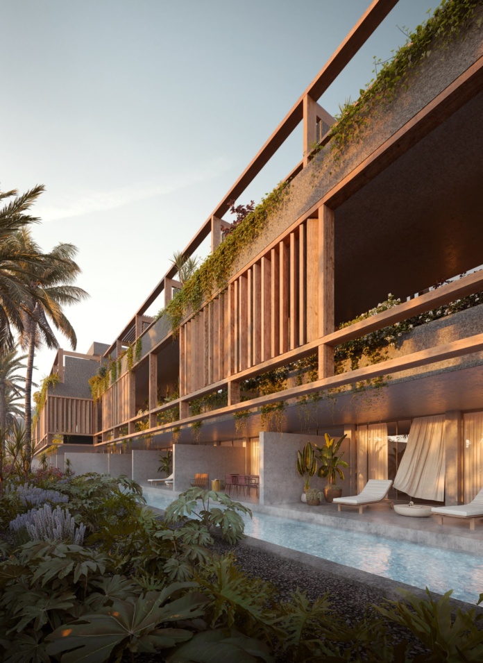 El agua y la vegetación, junto con el protagonismo de la madera, dan al resort el frescor y la armonía necesaria para crear un bello espacio de calma donde el tiempo deja de tener importancia.