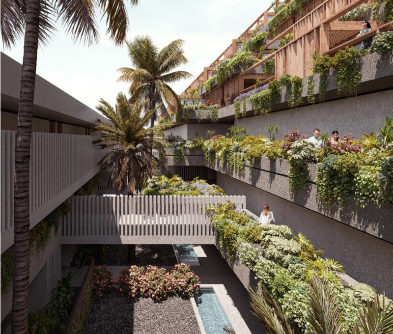 Además de la clara orientación a la intimidad de las terrazas privadas y los apartamentos, Kora Tamaragua crea zonas para el disfrute en común mediante espacios destinados al descanso, la movilidad y variadas actividades.