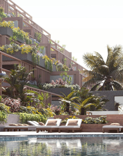 Las plantas, árboles y flores son el hilo conductor de Tamaragua. En Kategora sabemos la importancia que el uso de la vegetación local tiene en el entorno, ayudando a integrar el complejo en el paisaje y refrescando el ambiente y las estructuras con plantas endémicas.