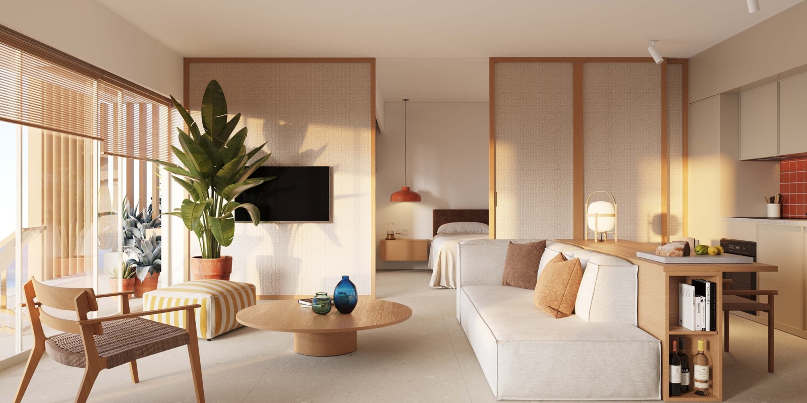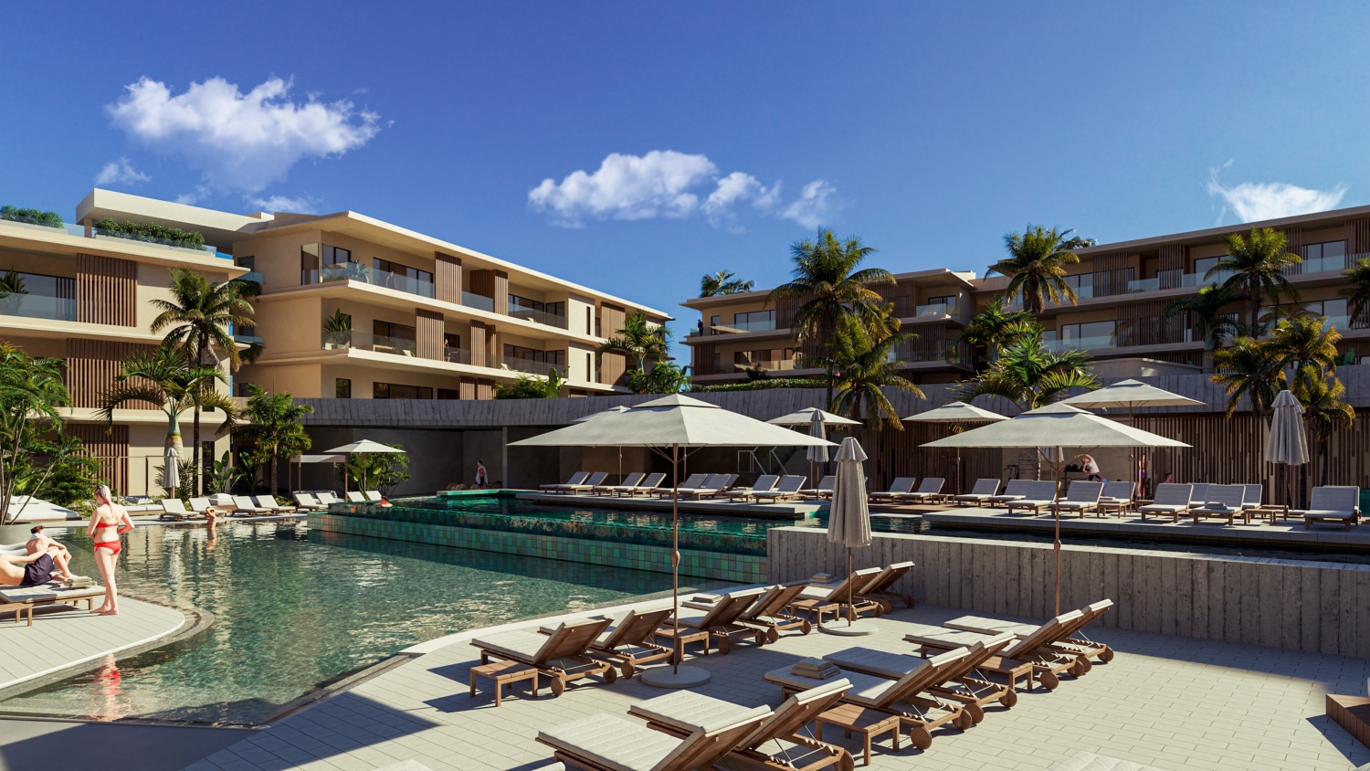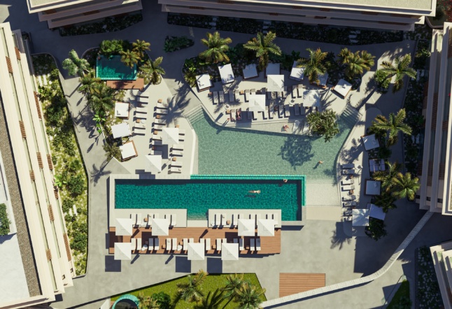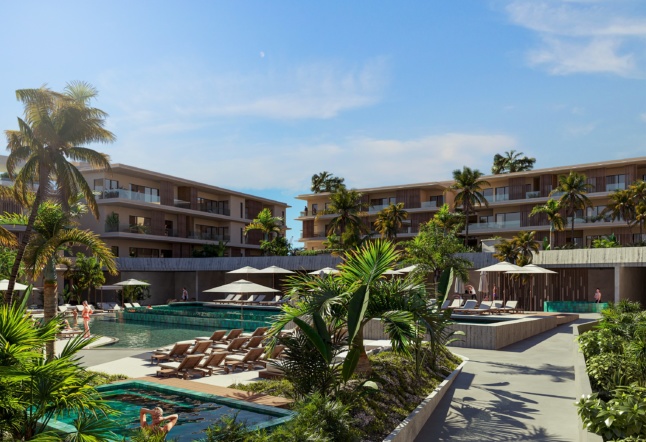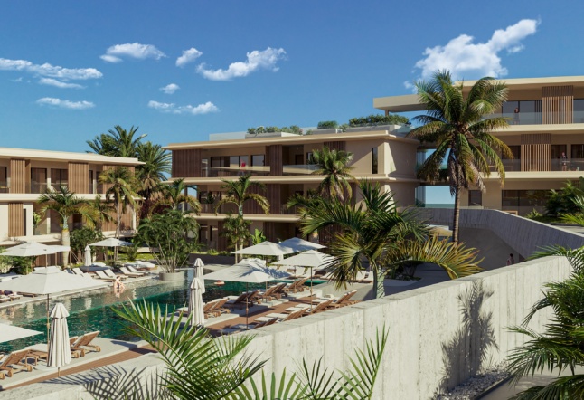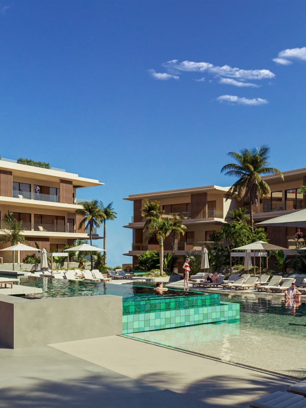 Apartamentos con uno o dos espaciosos dormitorios con terrazas orientadas al sur. El complejo ofrece servicios de recepción, limpieza, piscinas atemperadas, gimnasio, beach club, zonas ajardinadas, Kids club bodega, áreas de juegos al aire libre, áreas de recreación para adultos, espacio de trabajo y un centro de bicicletas.
